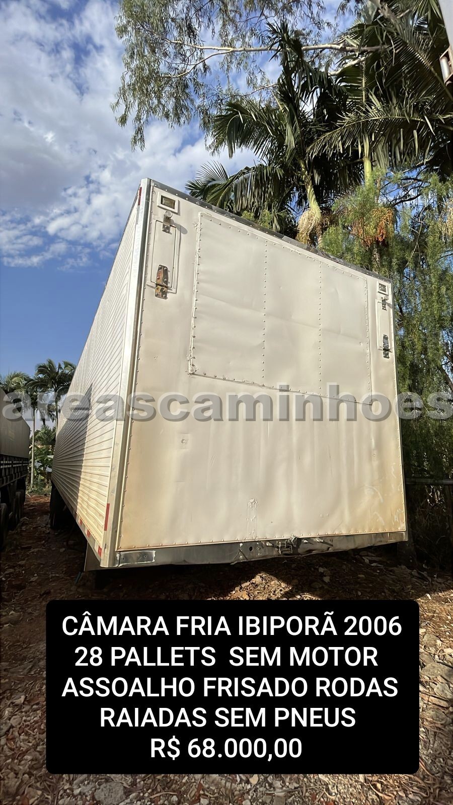 SEMI-REBOQUE CÂMARA FRIA IBIPORÃ ANO 2006/06, 26 PALLETS, SEM MOTOR, ASSOALHO FRISADO, RODAS RAIADAS, SEM PNEUS.